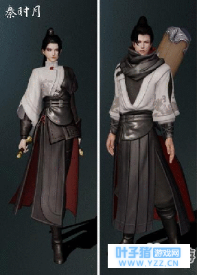 【秦时月】 这套衣服是首冲六块的萌新礼包里送的,女角色的衣服很帅,很适合暗香小姐姐/小人妖。 男角色的就相对平凡一些,远看和武当校服有点像~