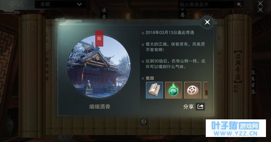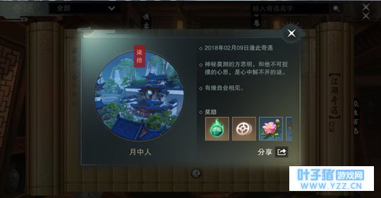 同时玩家也可以在天机阁里查看已完成的奇遇任务和相关条件描述,这里就要拿出杀手锏了:广交好友,踩在欧皇的肩上看风景!从已经完成的玩家那里偷窥天机。不过即使达到了某些必须条件,是否能成功触发奇遇还是要讲究缘分了。