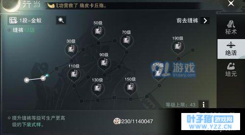 第三步,每到一定的等级,可以解锁一个样式(不同的行当,有不同位置装备样式)