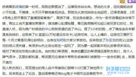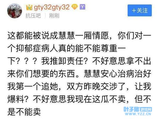 随后童童在贴吧发帖说明原因,帖子的内容前半段基本都在宣传楚留香,打广告,玩法自由的复杂、画面不错、捏脸、打帮战,网友都怀疑他是不是楚留香派来的宣传大使,而不是慧慧的出轨对象。而后半段就开始疯狂解释和慧慧认识的过程。表示自己只不过是关心了下慧慧,和嫂子只不过是玩玩而已。因为发帖内容过长,总结下就是:“楚留香是真的好玩,而且是嫂子先动的手。”