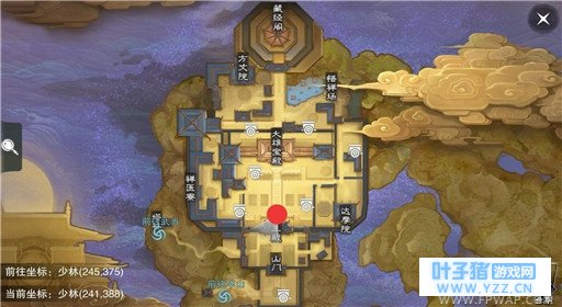 楚留香5.11日打坐点在哪? 武当:长生殿, 少林:天王殿, 云梦:观梦台,(雕像后面) 金陵:应天府, 中原:天机营。 左下为当前坐标,红点为人物在大地图上所在位置。 楚留香5月11日坐观万象位置一览