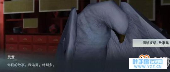 当我说完,酒馆里的气氛尴尬到了极点 居然没人撩我? 难道我真的是传说中的究极冷场王?? 罢了罢了,还是去逛逛酒馆里别的地方吧 灯光给你,说出你的故事… 我马上就发现了,酒馆柜台处有一只灵鹫鸟 据说是老板娘养的一只会学人说话的鸟! 如果对他说话,还有可能 会被它记录下来向其他来客展示!
