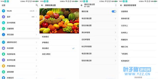 系统设置菜单基本没多大的改动,不过在显示模式里面还有黑白模式,这在手机中比较少见。毕竟 360 本身有做系统安全软件,所以在防骚扰拦截的方面还是做得挺用心的,电话短信都能云拦截。通话设置里面有一项比较有意思的,它可以在通话时播放背景声音,包括高铁候车室、飞机候机室、或者在工地上,至于有什么作用这里就不展开说啦。