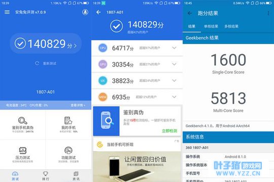 至于硬件方面 N7 使用了市场口碑极好的中高端处理器 —— 高通骁龙 660 移动平台,这颗处理器相信各位都很熟悉了,这里简单展示一下日常的跑分结果。安兔兔跑分为 140829 分,属于骁龙 660 的正常水平。GeekBench 单核成绩为 1600 分,多核为 5813 分。