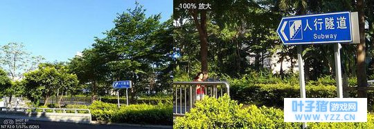 白天亮度充足时成像表现尚可,树叶细节、色彩表现都不错,宽容度稍微差一些。画面边缘也基本没有什么劣化的情况,样张细节清晰度尚可,低 ISO 下依旧有一些噪点,画面不够纯净,不过也基本够用。