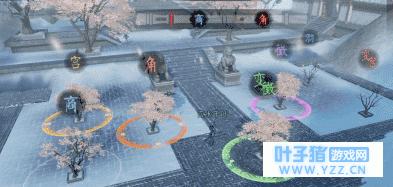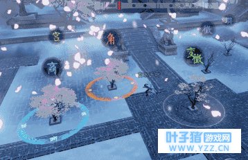 那么【 寒笛落梅 】到底该怎么玩呢? 这就告诉大家! 首先,我发现场景中出现的梅树,分别对应【 宫-商-角-徵-羽-变宫-变徵 】七种音律。这些梅树分别有 枯木、含苞、盛开 三种状态,每次开场前每棵树的枯荣状态都不一样。