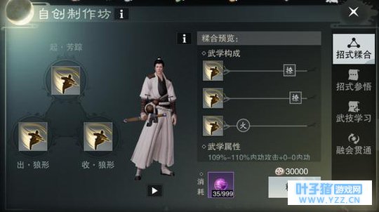 [奇招百出 搭配千变万化] 在自创武学中,玩家将自定义起手、出招、收招三个部分,而每一部分都有极其丰富的动作谱以供少侠选择,三个部分互相搭配,将组成完全不同的动作招式。