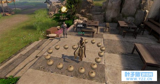 生活玩家行走于山水之间,采草挖矿,砍树钓鱼。路边那些毫不起眼的罐子、木头堆里藏着不少小物品小工具,用于合成秘药、暗器、时装等,需要玩家去探索收集。