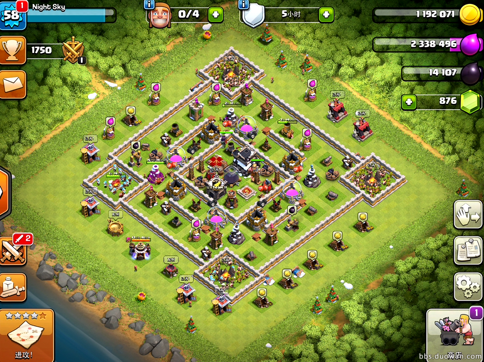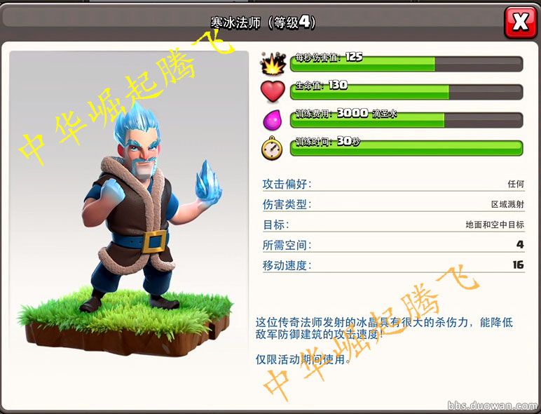 我的村民去南方度假去了,不下雪每年这雪花飘的 眼睛都花了,这白墙好丑 给你们个国人截图 看看效果吧。 9本满级墙效果: 好了,开始上干货了,这个官方说了有活动,但是没说内容。 主要有兵营,法术加速,部落战星星奖励。 圣诞独有的法术,陷阱,兵种,法术没啥特别的,就是个冰冻效果,而且是1级的,其他的还是有特色的,还是老规矩,回复可见最后有视频。 冰冻陷阱这个在视频里有触发,但是没有产品冰冻效果,我这个是山寨品,冰冻的特效为1级冰冻。 这次大范围的增加了进攻,兵种属性提升了不少多一个减速是不是影响非常大呢,拭目以待。 冰法,借用法师的界面,实际上冰法只有1级,对防御有效,援兵未知,视频可见。 了解更多相关信息,请前往http://sy.yzz.cn/coc/ [编辑:二蛋]