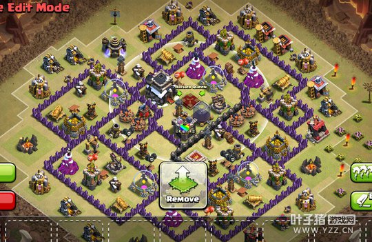 No.3 1.多墙格挡,能让女王进内层后无法立即凭借射程爆你黑罐,起码得破掉一层墙才能爆黑。 2.引导炸弹人炸外层墙,或者能保证迫击炮或法师塔能第一时间秒了炸弹人。 3.防屌丝进内层一个治疗吃完你黑,所以内层必放大炸弹。 4.黑罐旁边放金水库大本城堡等高血量建筑尽量延长敌方部队进攻的时间,为我方防御输出提供时间。 5.防天女爆黑,点伤建筑集中,防空靠内,空气炮位置也有讲究。(但是目前九本仍然挡不住高级天女) 补充一句,女王的技能一样是爆黑的有效手段,目前无解 中间四面墙分两层隔开,有效阻挡女王爆黑