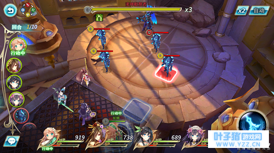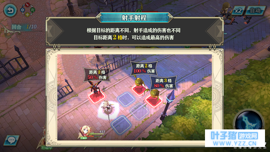 游戏内的技能按钮只有一个,通过下划实现防御,上划是放必杀,点击则是普通攻击。必杀技需要积攒怒气值,这属于通常的设置就不多说了。虽然只有三个技能,每个职业相互配合可以打出很棒的战斗场面哦。 战斗时角色每回合可以移动一次,攻击一次,而每个角色的移动范围(俗称腿长)是不一样的,攻击范围也不一样,这就是展示策略的时刻啦,根据不同情况布局战斗很重要。 需要注意的是射手职业需要在离敌人三格的距离才能打出最高伤害,而被近身则伤害减半。(知道PVP怎么打了吧~)