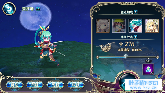 神无月的PVP部分分别为竞技场、天梯、练习赛。 竞技场与一般游戏竞技场差距不大,可以设置防御阵型抵抗敌人,也可以去挑战其他角色提高自己的排名。战胜对手获得荣誉点数可以在商店换取召唤卷轴等道具。每次挑战系统会分配五位不同难度的敌人,五连胜会有额外奖励。 竞技场的次数每天有限制,所以没把握的时候可以选择刷新,直到有你匹配的敌人出现,然后选择战力最高的挑战,不要浪费次数~当然战斗的时候一定要注意属性克制和走位,贴脸打射手,答应我。