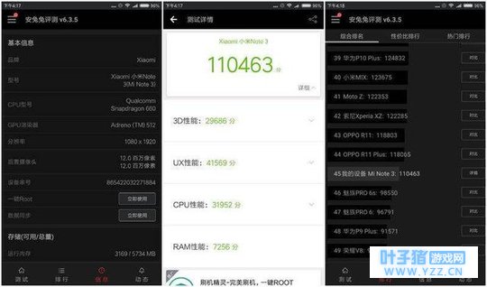 安兔兔的跑分钟显示,小米Note 3跑出了11W+的成绩,从这个成绩来看,比肩上一代骁龙旗舰没有一点压力。虽然小米Note 3并没有与任何一家手游厂家有合作,也不支持所谓的“高帧率模式”,但在应付《王者荣耀》这一类热门手游却也是游刃有余的。 采用了玻璃机身的小米Note 3的它还拥有不错的温度表现,甚至还要比小米6的温度低上少许,可见从实际表现上来说,尽管骁龙660与骁龙835之间一个是极致性能和一个兼具功耗均衡的Soc,但也是一颗不容小觑的游戏级处理器。 加上超高的颜值和罕有的四轴光学防抖+人像专业拍摄的玩法,小米Note 3被认为是高颜值游戏手机更是名副其实!