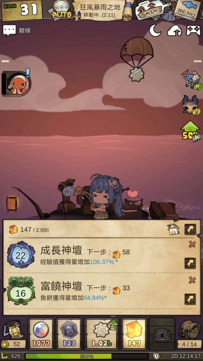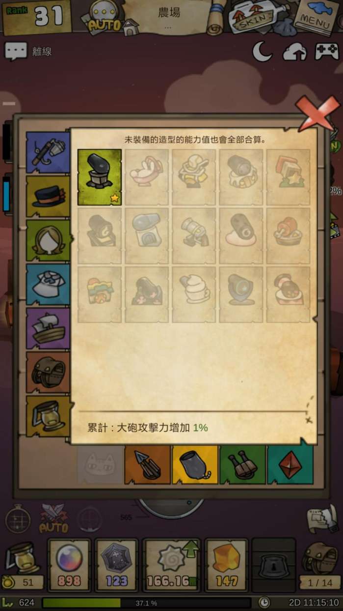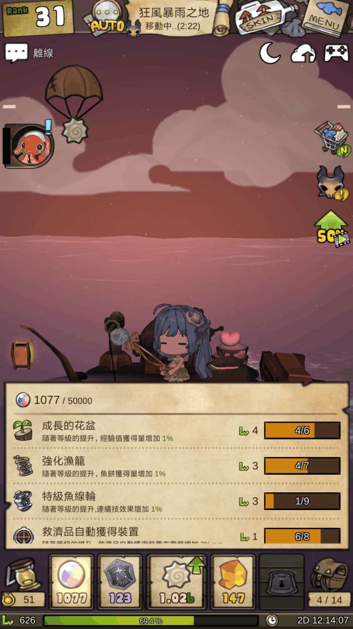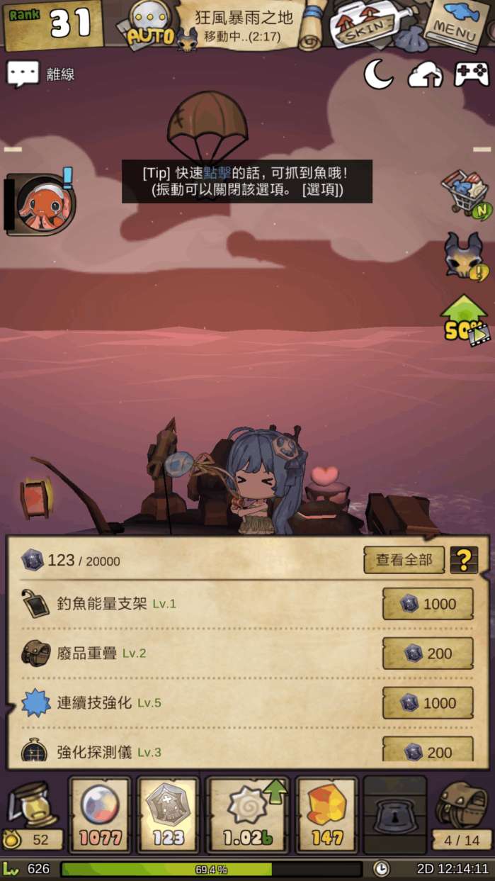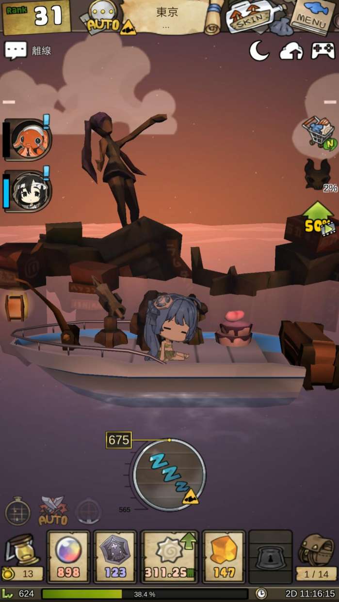 东京的初音殿下!!! 香港富有中华特色的建筑物。类似的彩蛋数不胜数哦,大家也可以在游戏中自己寻找。 在漫长的游戏过程中难免会感到无聊,这是放置类游戏的通病,而且漂流少女不能后台挂机,这一点是漂流少女相当大的一个毛病,但是制作组为了消除游戏中无聊的感觉,做了很多努力,花样繁多的换装饰品系统(我女儿一定要穿好的!),拥有皮肤的物品多达11种。比如说这个普普通通的船,可以变成乌龟! 又或者是汉堡包! 真的是脑洞有多大,船就有多少! 游戏中还有很多小游戏的环节,打的好的话,会给予你一些奖励。 还有种类繁多的升级系统,武器升级 道具升级