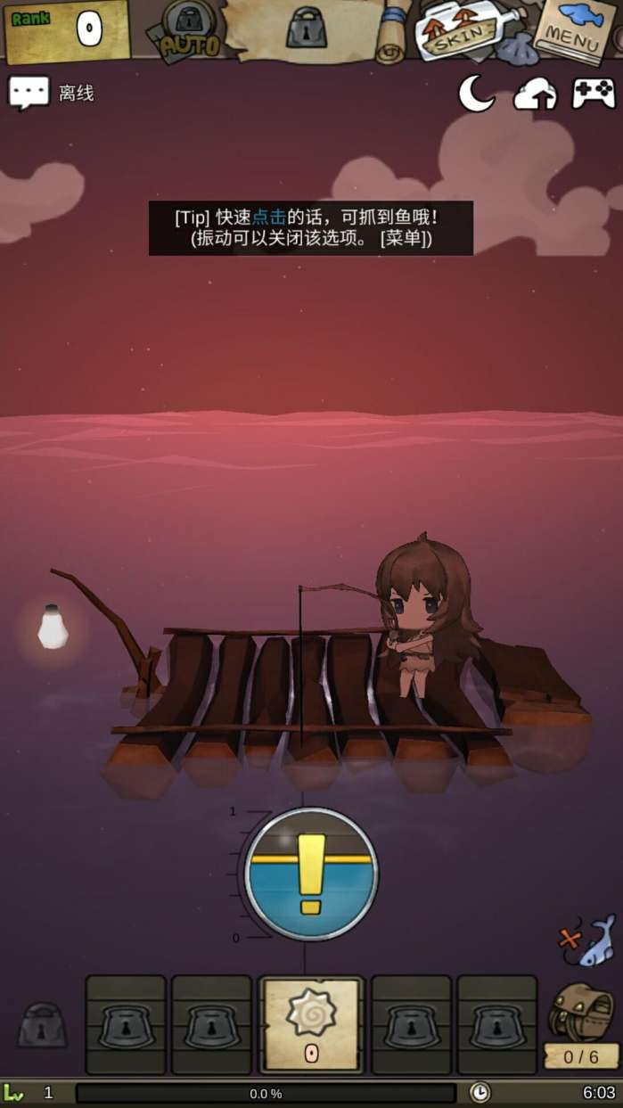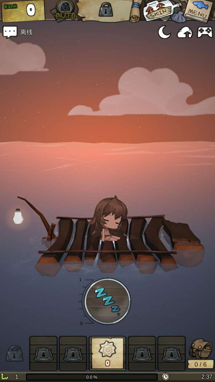 首先轻触进入游戏,海浪声边流入耳中,虽不能说是悦耳,但听起来还是十分舒适的,Q萌小女孩在简陋的竹筏上打瞌睡,显得十分可爱。