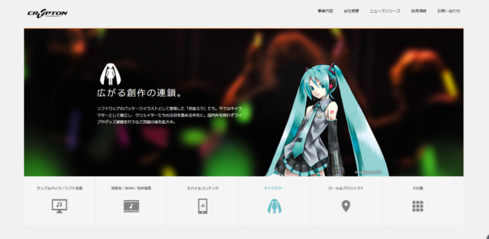 C社官网的主页面 大大的初音未来 初音未来的出现一下子就引爆了当时低迷的业界。据统计显示,初音未来的声库仅发售一年便突破了4万份,作为一款音乐制作软件,这个销售数字简直就是个奇迹。随着初音未来的人气暴涨,相关的创作热潮也随即被带动起来。2007年11月,日本最大的弹幕视频网站NICONICO有关于初音未来的相关投稿就突破了整整一万份,要知道当时距离初音未来正式推出才过了3个月不到的时间。