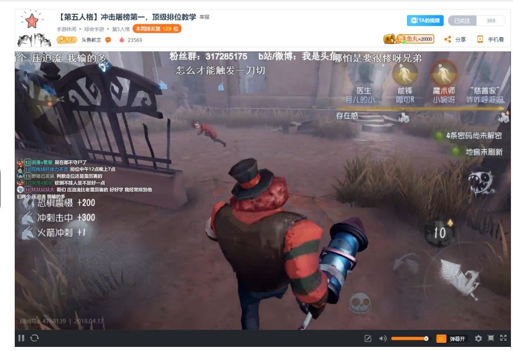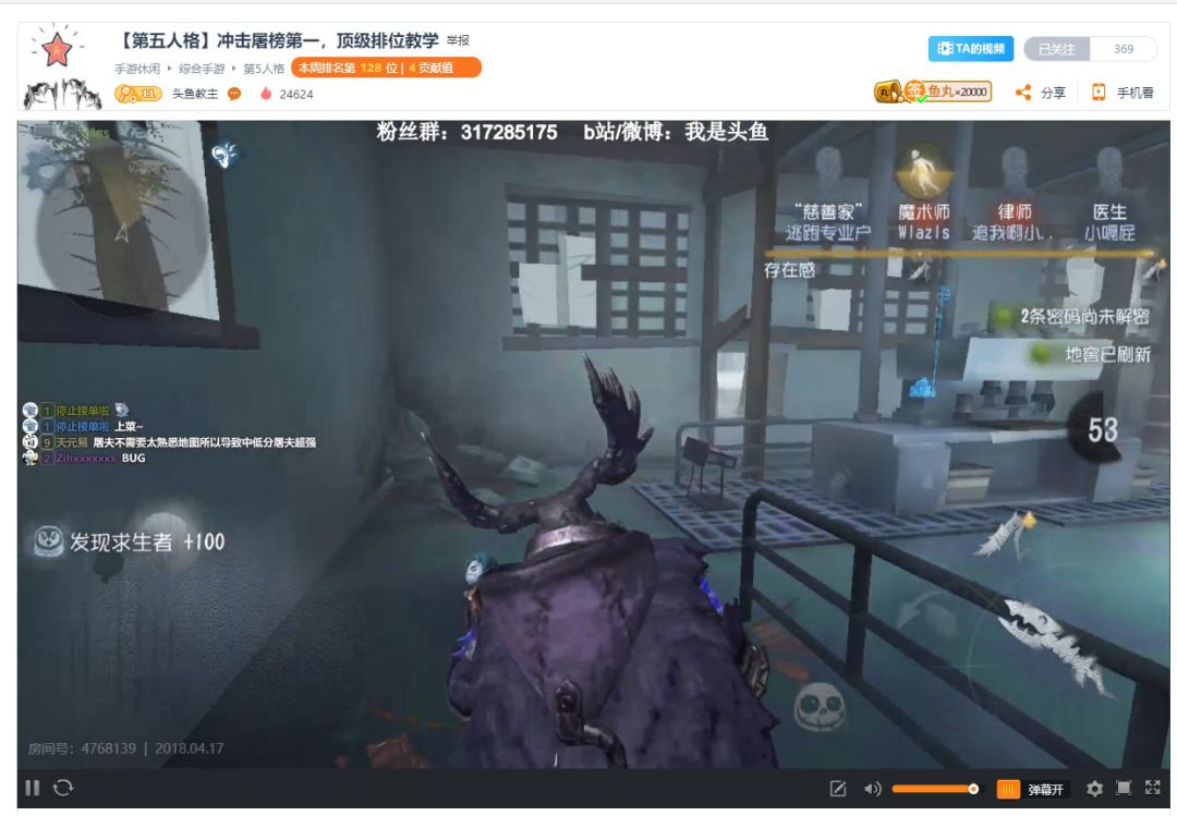 战绩斐然 三天拿下榜单次席 头鱼教主,观众们称其为 “冲榜小火箭”。开服冲刺阶段,仅三天。他就达到了监管者榜单次席。并且平时在斗鱼平台的直播,头鱼教主也人气飙升,不少玩家都慕名而来,一睹其监管者操控之技。