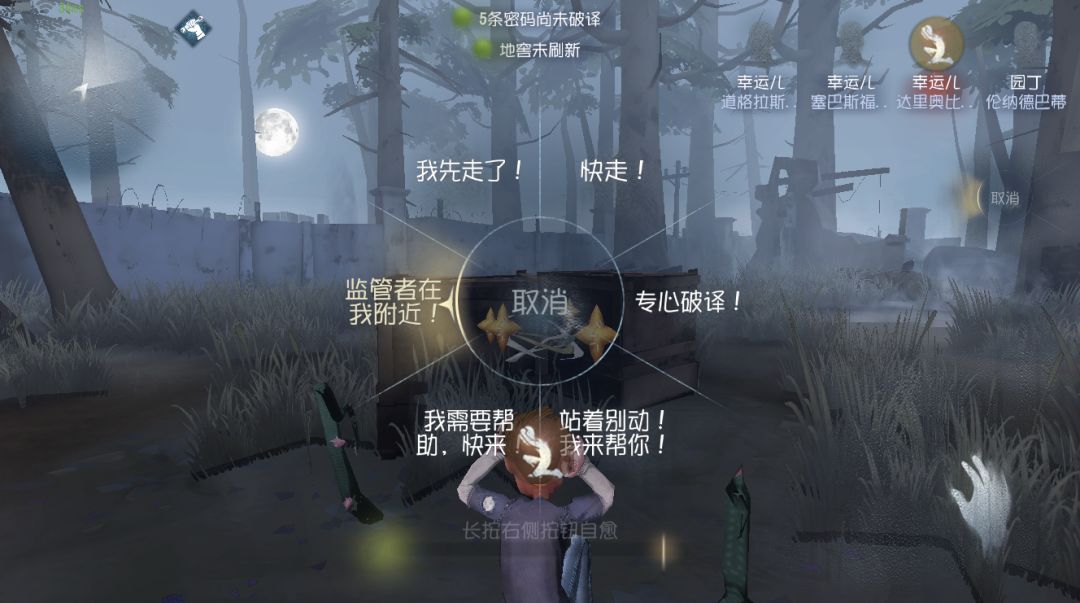 针对这个,我们在 本周 会推出快捷发言功能 通过游戏内的轮盘指示,求生者可以发出 不同的指令