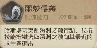 初始技能攻【噩梦侵袭】 ——指挥触手攻击求生者。 初始技能操控距离很长,但对预判要求也高。走位风骚的求生者完全不用慌张!