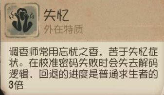 被动技能【失忆】解码时,校准失败后,回退进度是普通求生者3倍。