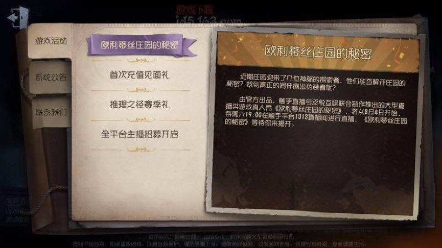 8 月 4 日,期盼已久的首档《第五人格》真人秀节目 《欧利蒂丝庄园的秘密》 正式在触手平台开播啦!这次的节目是由《第五人格》官方监制,由触手平台以及泛悦互娱共同打造的首档综艺类游戏真人秀节目,邀请了众多知名主播作为第一期节目的参与嘉宾,一经上线火爆网络,吸引万千玩家目光。