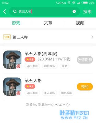 步骤二: 输入游戏【第五人格】点击预约进入游戏详情页。