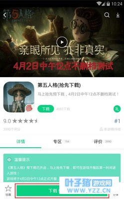 3月30日10点《 第五人格》开启 预下载 了,赶快到好游快爆APP里面下载吧! 下载方法:搜索好游快爆APP,搜索“第五人格”,即可预下载。 4月2日中午12点开启大范围测试 ,记得准时参加~