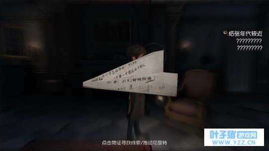 打开纸飞机,我们知道了这个庄园每天都会举行一场奇怪的游戏,这个纸飞机是一名游戏幸存者留下来的。我们看完这个线索后,获得解锁技能“还原案发现场”,之后侦探带着我们进入了案发现场。