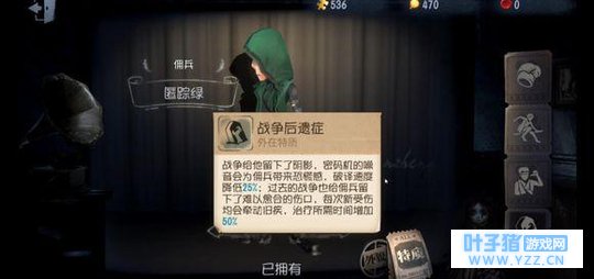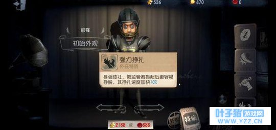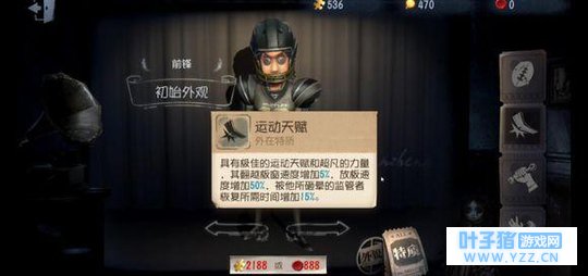负面buff 当有队友被放在椅子上时大幅度降低修电机速度 几乎修不动电机 玩法: 新手保命神器,救人逃脱监管者的不二之选, 身手矫健,可跑可秀