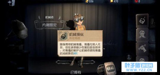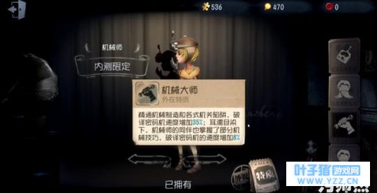 增益buff 群体buff 自身大幅度增加修机速度 队友小幅度增加 Ps:这里的百分之八是可以重叠的两名机械师就是百分之十六空