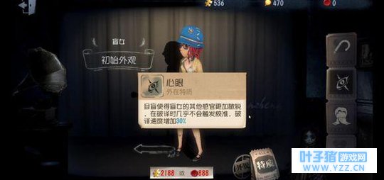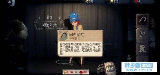 盲女主动【工具/技能】 被动:敲打地面,看清前方的路 主动:用力敲打地面加大视野范围 无消耗有过长的CD Ps:盲女有很多细节这里没有体现 例如共享视野,开局显示监管者位置等