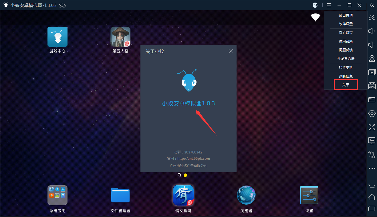 2、检查模拟器版本是否在 1.0.3及以上 ,如果低于此版本,需要前往小蚁模拟器官网下载最新 “先行版”模拟器 覆盖安装(检查更新到不了最新版本哦)