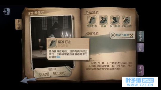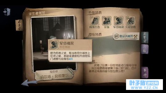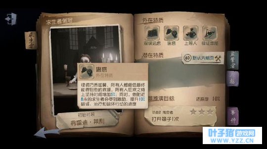 逃亡者中每个人都有自己的长处和弱点。不同人物间良好的配合是制胜的关键。 个人觉得适合新手的是医生,因为找不到伙伴的情况下可以自疗,增加生存机会。但因为是上等人,翻窗效率低,要把握好翻窗时机。