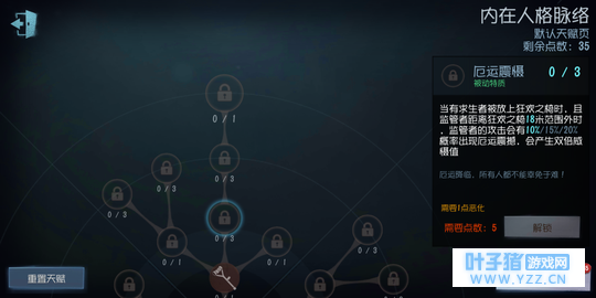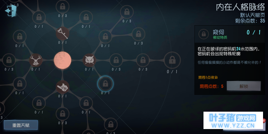 点出了破窗理论,膝跳反射,大心脏的空军是非常op的存在,点出大心脏的原因是在打掉子弹之后依然可以用身体为队友挡一刀去救人,以及最后的撤退可以翻窗+大心脏加速达到一个非常逆天的撤退效果 团队保镖,一枪入魂 6.魔术师 比起魔术师我还是更乐意叫他神棍 玩神棍只需要注意两点 一丶魔术棒只有三次使用机会,且一定要注意使用时机,魔术棒的影子是可以扛住屠夫一刀的 二丶魔术师一定要避免跟屠夫正面交锋,尽量猥琐,被上树的神棍施救难度很高,搞不好会送掉队友的命 天赋和空军一样 7.佣兵 佣兵的弹簧护腕可以让屠夫抓狂,也可以让自己抓狂,使用得当可以为队友争取很多的时间 弹簧护腕不用的时候一定要点一下关掉 护腕的使用很简单,其实就是靠近掩体的时候迅速往另外的方向拉动方向键 对佣兵唯一的要求就是对地形的掌握一定要熟悉 其余的角色,等开放了之后再做补充 现在聊聊天赋树这一块 40点人格就可以点出一个大天赋(每个天赋分支的最后一项),但我并不推荐直接点出