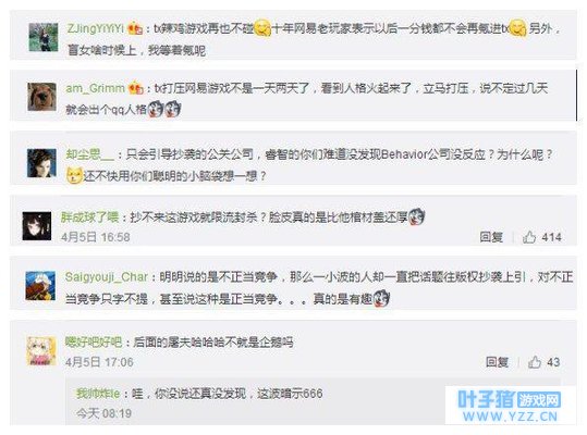 有的网友认为这又是腾讯在打压网易,也有网友表示本来是一场不正当竞争,却被引导为“抄袭”,网友们的看法各有针对性,但是不可否认腾讯和网易都是目前国内两大巨头游戏厂商,双方一直以来都有明争暗斗,但是小编认为行业竞争应当是公平的核心竞争力的角逐,玩家的喜爱和口碑才是最重要的,因为行业竞争而排挤打压《第五人格》确实有点伤玩家的心,但是这款游戏到底有没有侵权还有待认证。 那么大家对这件事情有什么看法呢?这次你站哪一边呢?欢迎在评论区留言。 |