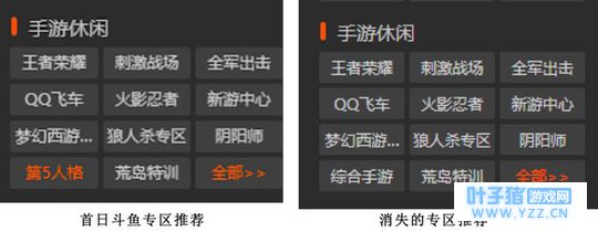 相信前段时间某厂投资虎牙和斗鱼的事情很多人都知道,基本上这个操作下来,国内的主流直播平台某厂已经吃下了一大块。 而这次之所以能看出来打压《第五人格》是谁做的,从手游推荐的变化上就能够看得出来,在虎牙和斗鱼的推荐页上,《第五人格》已经消失的无踪无际。而屏霸首页的游戏,一眼看去,都是同一个厂商的产品。