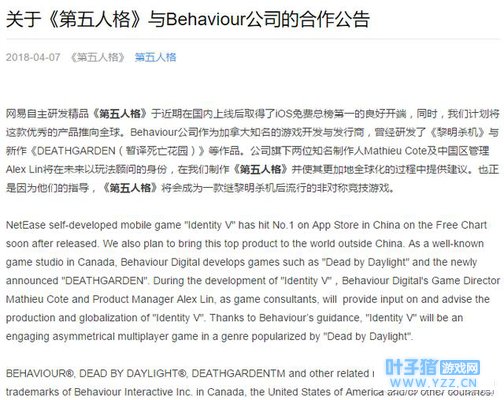 所以真相就是,网易公司已经和Behaviour公司达成合作,该项目的制作人Mathieu和中国区管理Alex作为网易的玩法顾问,协助和支持网易制作了《第五人格》。