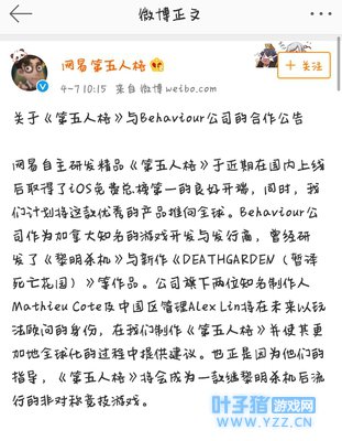 最后,网易《第五人格》现在和《黎明杀机》公司存在合作。