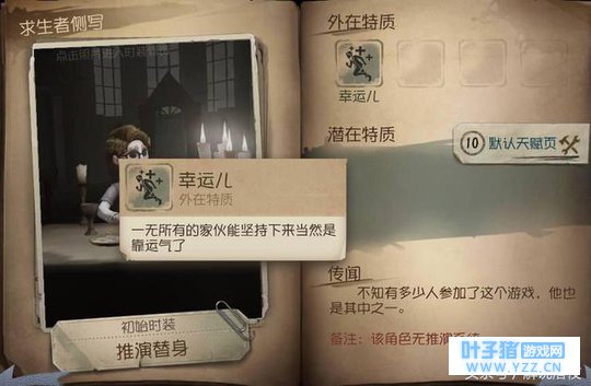 比如,在游戏中的求生者阵营中就有着很多角色,并且每个角色都拥有着不同好玩的能力,当然这并不包括幸运儿。毕竟,在游戏中,对于幸运儿这个角色的介绍就非常的暗示,表示这个角色一无所有,能够坚持下来当然是靠运气了。不过小编却觉得,真正的大神就应该使用这个角色啊!(偷笑)