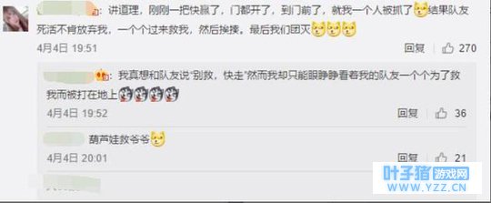 而这也引起了玩家们对于自己遭遇的各种奇葩时间的分享,有一名女玩家还说,本想四个人一个都没死,就她自己都被抓了,结果队友们一个比一个讲义气,硬是一个人都没走,全部过来救,结果全队团灭,一波葫芦娃救爷爷的操作估计也是把坚守者高兴慌了。不过看得出来,这个女玩家遇到的遇到的队友还是很讲义气的,小编玩过几次,最怕那种明明有机会救,却直接走了的人,看着真是心都凉了一半啊。