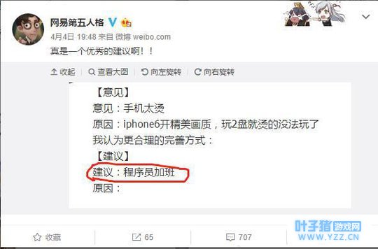 他在信中表示游戏很不错,但是因为手机太烫了,所以就是提出了自己的完善方式,要求程序员们全体加班去维护这款游戏。不得不说,小哥的建议非常的不错,也具有很大的实施性,但是,小编想说,你不怕程序员越过网线来打你吗?别人都这么惨了,居然还要求别人加班,实在是看的小编很不忍心啊。