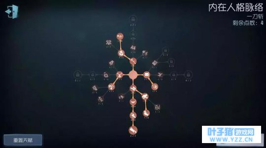 最后天赋点右下角的牵气球,很多时候好不容易抓到人了,或者包圆了,但是椅子太远,特别手机操作经常乱晃,所以牵气球其实非常实用,不然总是追追跑跑浪费时间,特别到了100分左右的逃生者,前期这么跑1次可能这局就GG了。 这个号还剩3点满,这三点可以把牵气球点满,追猎看个人,可以不点,触发时间比较长,一个翻窗就没了,直线小丑都是用灵车漂移,不需要这种速度。 这样牵气球点满,点一下嘲弄3%速度也凑合。 另外一种是一刀斩的点法,减少了板区杀手能力,专门加强了店门充电一刀斩的效果,这个点法主要是为了克制速攻型打法,也就是解码型的天赋。