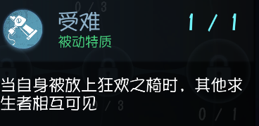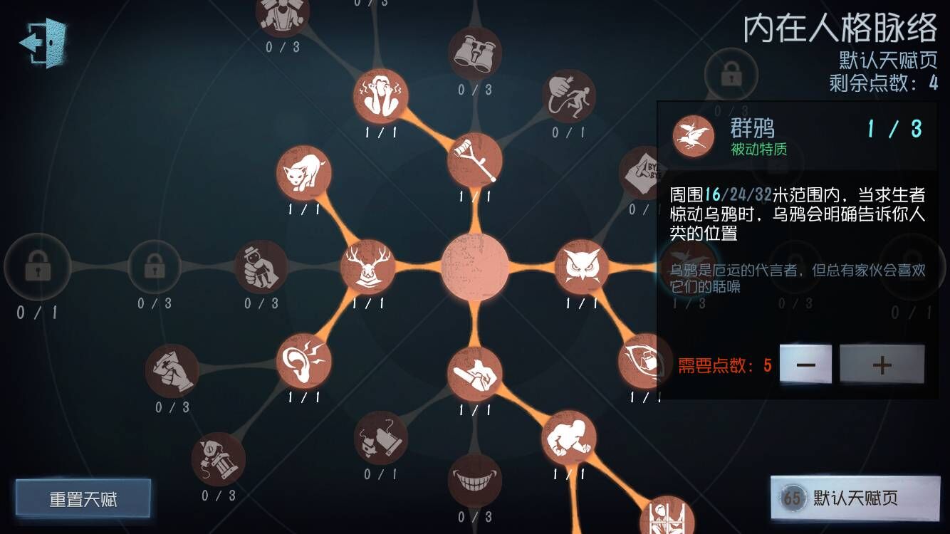 这些都是可以增加你在整场游戏中存活的时间。 为什么要点 【回光返照】 ,这等于是一口无视倒地的加血,甚至给你一个爆发性的冲刺去开门, 在个人,尤其不是医生逃生的时候,非常非常管用 。 此加点适合有一定能力不怕屠夫发现,熟悉了解地图上乌鸦位置,并且有能力自己把屠夫溜走的小伙伴们加点