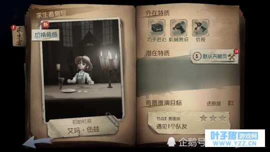 《第五人格》是一款由网易出品的非对称性对抗竞技手游;目前下载量已经冲顶。 在游戏中,你将扮演侦探奥尔菲斯,在收到一封委托信之后,进入一个恶名昭著的庄园调查一个失踪案件。在进行证据调查时,你将会采用演绎法,对真假男子的整体情节进行回顾,在这个过程中,你可以担任求生者或者监管者,与庄园里的人展开激烈的对抗。 不过,由于是一款悬疑类游戏,所以游戏中系统并没有给出特别多的提示,所以,有很多的基本操作还需要我们自己进行一一的摸索,在这里,小编就为广大玩友总结了一些很有用的操作技巧,来帮至大家更好的进行逃生和抓捕: 第一、怎么切换角色 这一点,二十广大玩友在刚接触游戏的时候最迷茫的一点——往往都会由于不了解切换角色的方法而只能使用同一个角色进行游戏。方法呢,就是先点书架,进入匹配后,在左侧会有一个书页的侧边,点一下,就可以换人物了,并且可以看到每一个人物的具体属性: