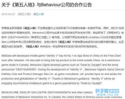 合作公告 最好找几个《黎明杀机》的游戏视频好好研究一下,这些内容就足够在其他人面前侃侃而谈了…… 话说,网易什么时候在《第五人格》把“杨叫兽”实装了呀!