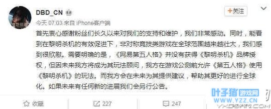 之前关于《第五人格》抄袭《黎明杀机》的事情传的沸沸扬扬,最近《黎明杀机》的官方微博终于发表声明了。称《第五人格》并无品牌授权,但与官方有玩法合作。