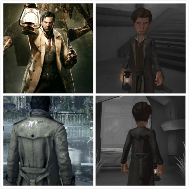 其实《第五人格》除了因为玩法与杀鸡雷同导致舆论褒贬不一,在其他内容上也有争议。 游戏中很多衣服、道具都与很多著名经典恐怖片不谋而合。 对于这种雷同,多数人可能认为这是抄袭、盗版,毕竟网易连杀鸡的版权都没拿到,怎么可能为了几件衣服和布娃娃去跟各大导演谈判。 不过UP更倾向于相信团队是在体验了一堆经典恐怖作品后故意留给玩家的彩蛋。 不过这些未授权的彩蛋如果上了法庭,是致敬还是侵权可就不是我说了算了。 1.与游戏《恶灵附身》男主角一模一样的衣服