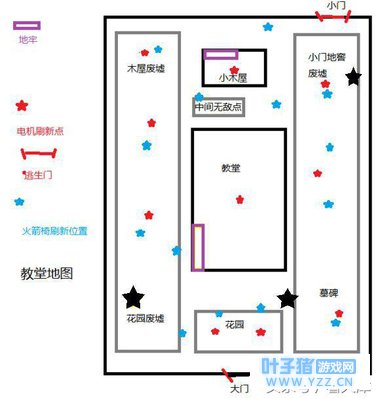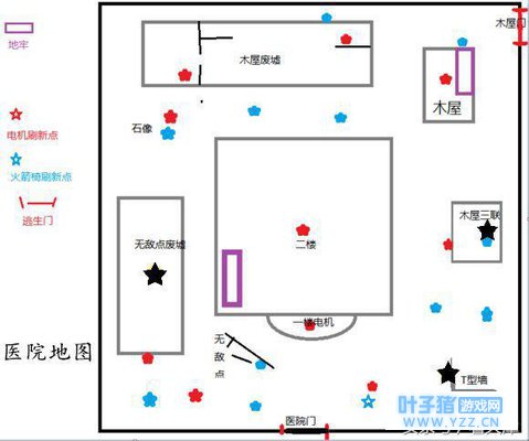 ▲医院的地窖分别在无地点废墟中间、右边木屋里和右下角的T型墙附近。 本文由“壹伴编辑器”提供技术支持 <红教堂>