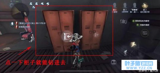 柜子: 求生者可以躲进柜子隐藏自己,但进柜子声音很容易被监管者听到,在柜子里被抓出来会直接被绑上狂欢椅。