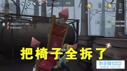 大家都知道,被屠夫抓了之后就会被绑在椅子那里,而你要想避免这个的话,可以考虑四个人都选园丁,然后开局的时候什么都不要想,四个都去先把椅子先拆了再说,等到把所有椅子拆了之后,各种站撸屠夫都不成问题了!